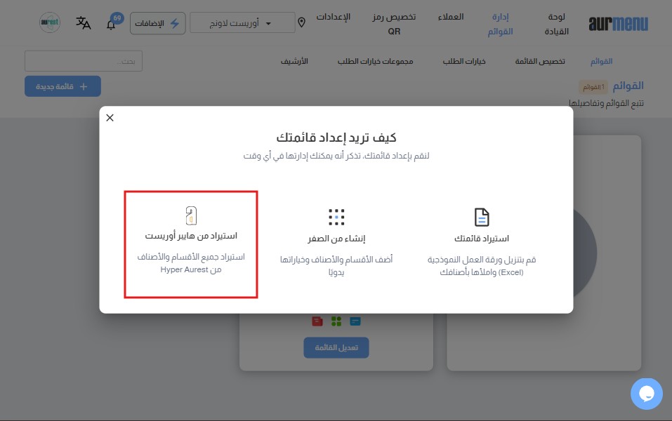 3️⃣ اختر "استيراد من هايبر أوريست" من القائمة.