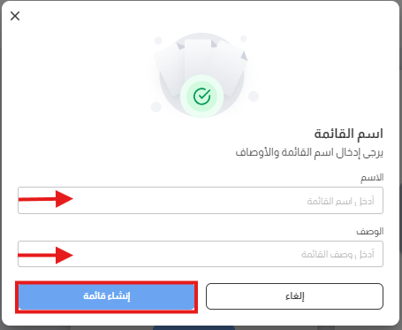 3️⃣ اضغط على زر "إنشاء قائمة" للمتابعة.
