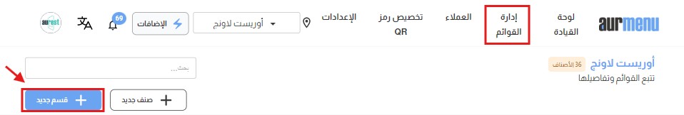 1️⃣ اضغط على "إضافة قسم جديد".