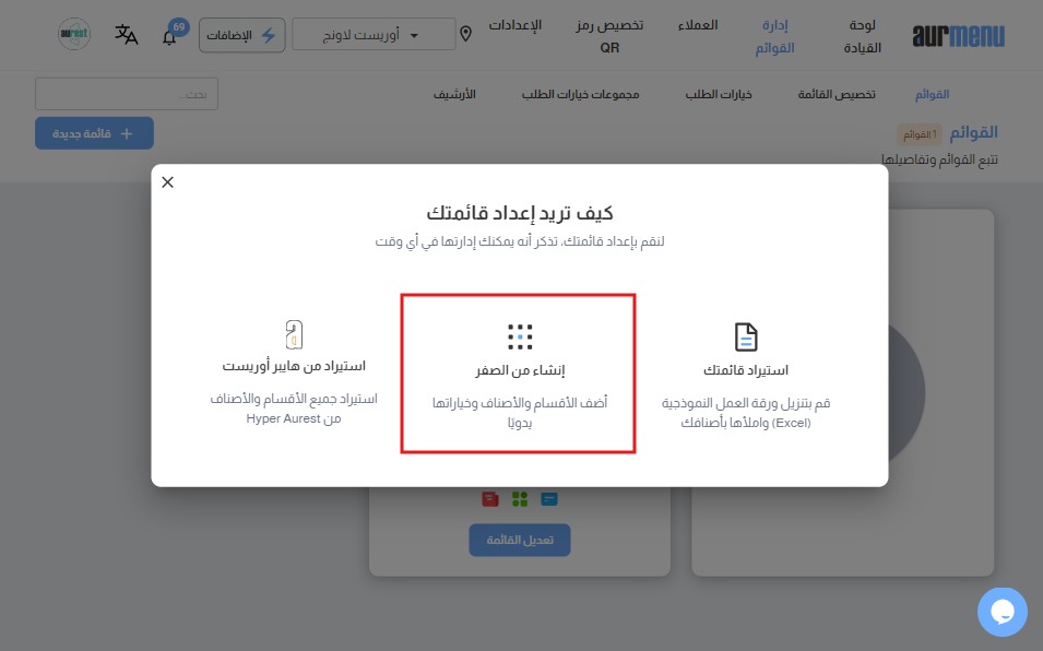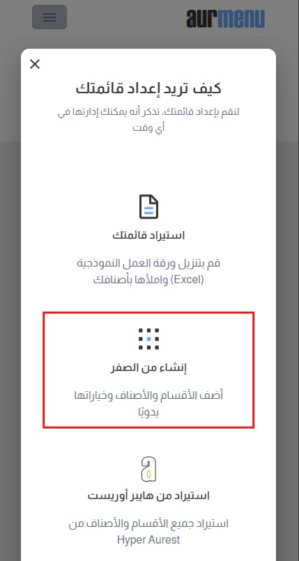✅ إنشاء القائمة من الصفر وإضافة الأقسام والأصناف يدويًا،وقد تم شرح ذلك بالتفصيل في هذا المقال.
