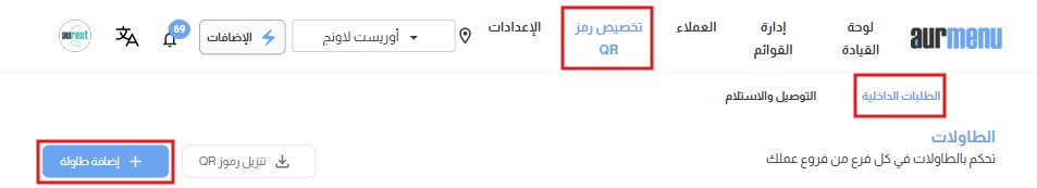 ✔ اضغط على زر "إضافة طاولة" لإنشاء رموز استجابة سريعة لكل طاولة في مطعمك.