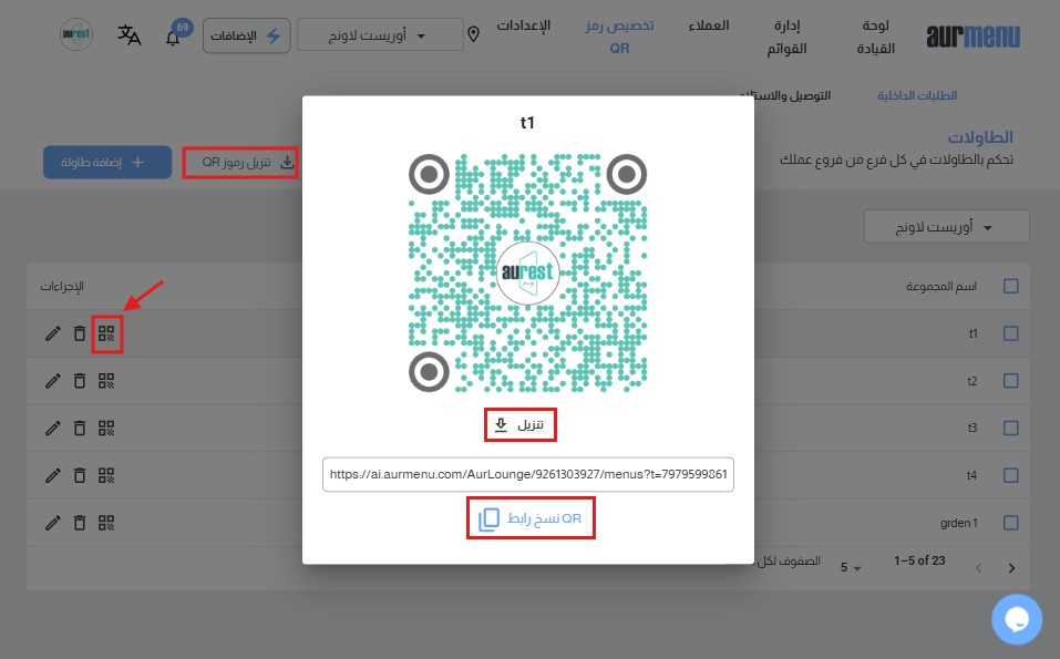- بعد هذه الخطوة، سيتم إنشاء رموز استجابة سريعة فريدة لكل طاولة.