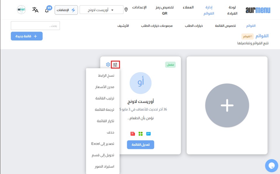✅إليك بعض المميزات الإضافية التي يمكنك الاستفادة منها أثناء إنشاء وإدارة قائمتك في أورمينيو ستظهر عند الضغط علي هذا الزر الموضح في الصورة :