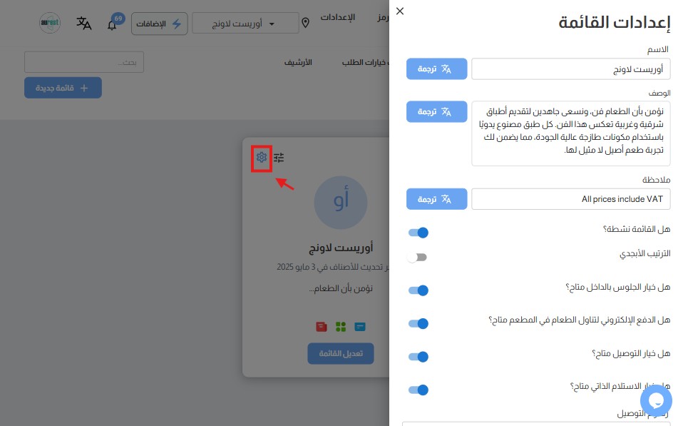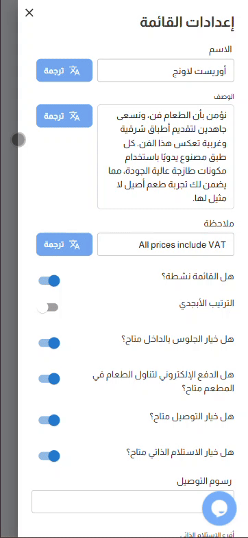 إذا كنت بحاجة إلى تقديم قائمتك بلغات متعددة، يتيح لك أورمينيو ترجمة قائمتك بالكامل إلى لغات مختلفة، مما يسهل عليك خدمة العملاء الذين يتحدثون لغات مختلفة.