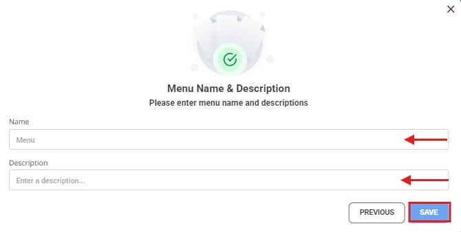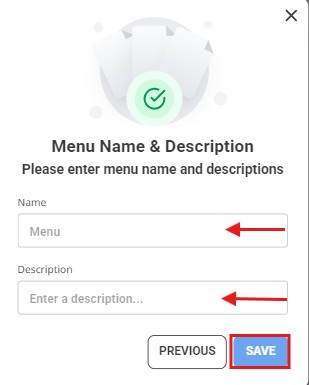 ✔️"After creating the menu, enter a suitable name for the menu and add a brief description that explains its content, then click the 'Save' button to complete the process."