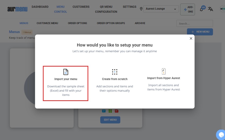 3️⃣ Select "Import Your Menu" from the displayed options.