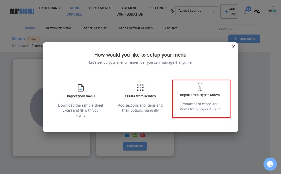 In this guide, we will explain how to import your menu from Hyper Aurest into the system with simple and easy-to-follow steps.