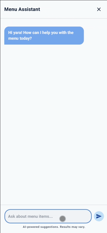 In this article, we will explain how to use the "Chatbot" tool inside the digital menu. This feature is more than just a search option; it is an advanced AI-powered tool that enhances your browsing and ordering experience.