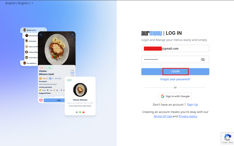 Before you begin, make sure to log in to your Aurmenu account.