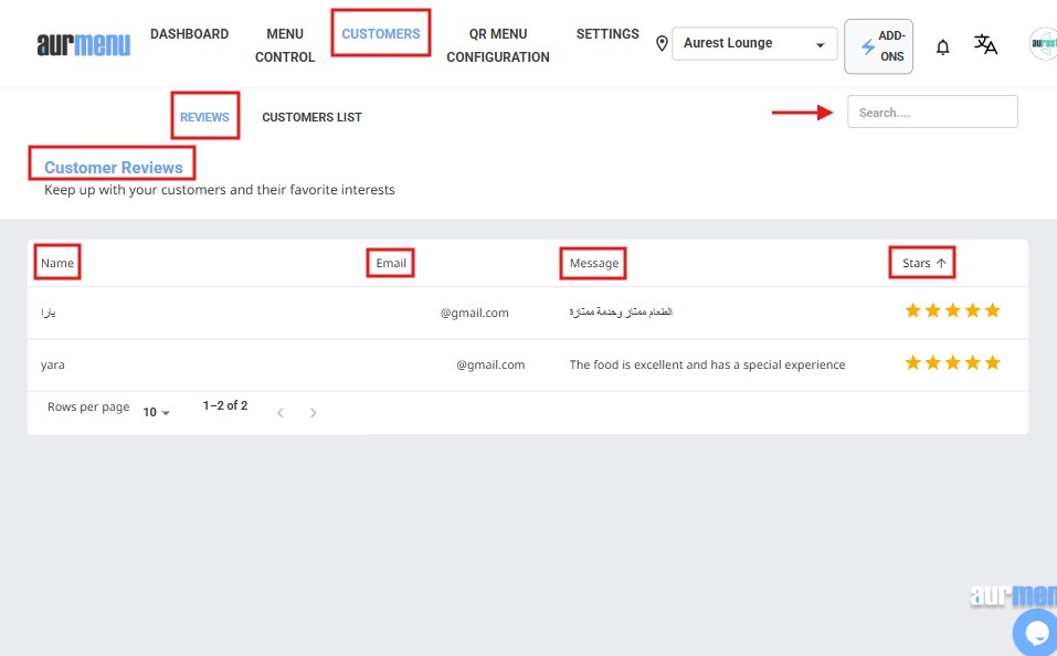 ⬜ How to Use the "Customer Reviews" Feature to Analyze Feedback and Improve Your Experience in Aurmenu