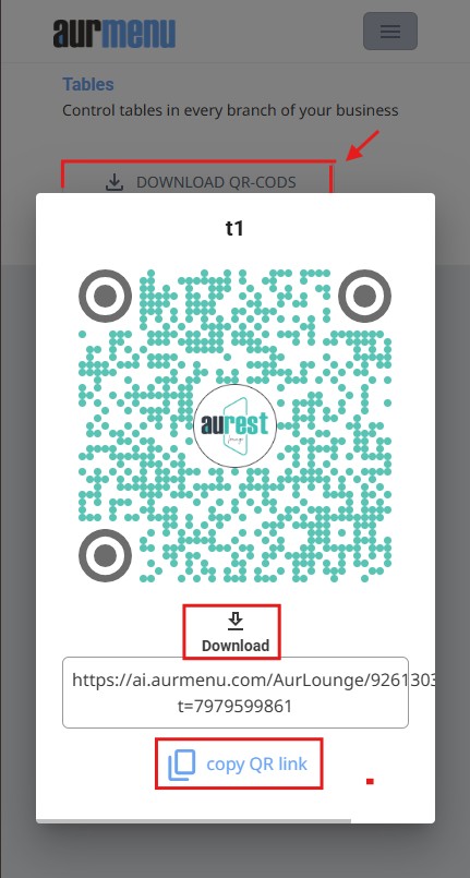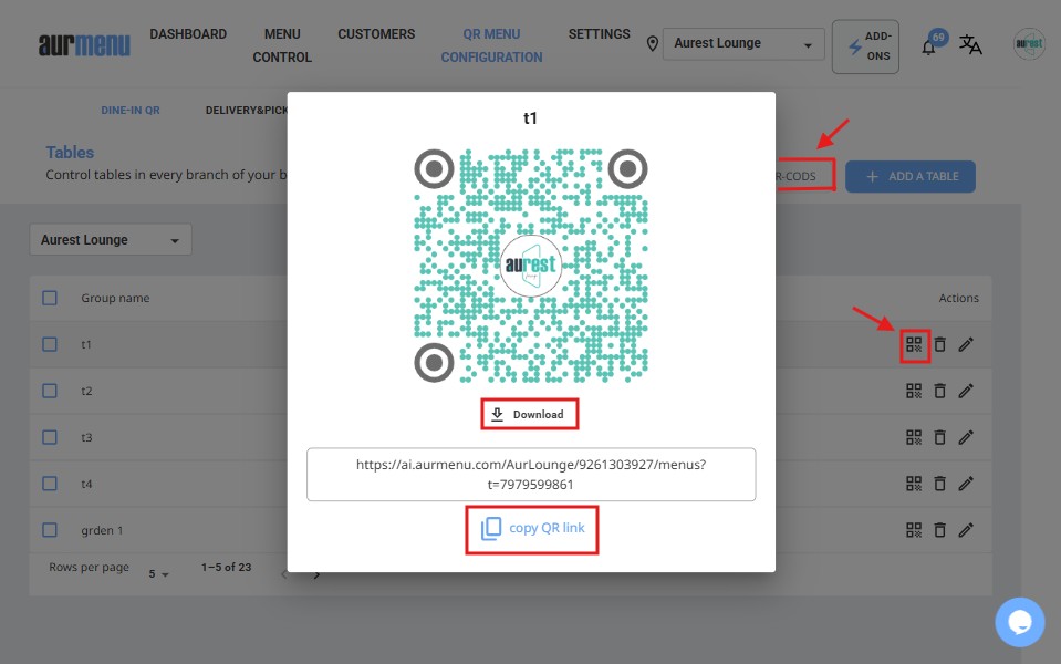 - Once completed, unique QR codes will be generated for each table.