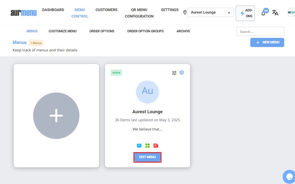 1️⃣ Log in to your Aurmenu account