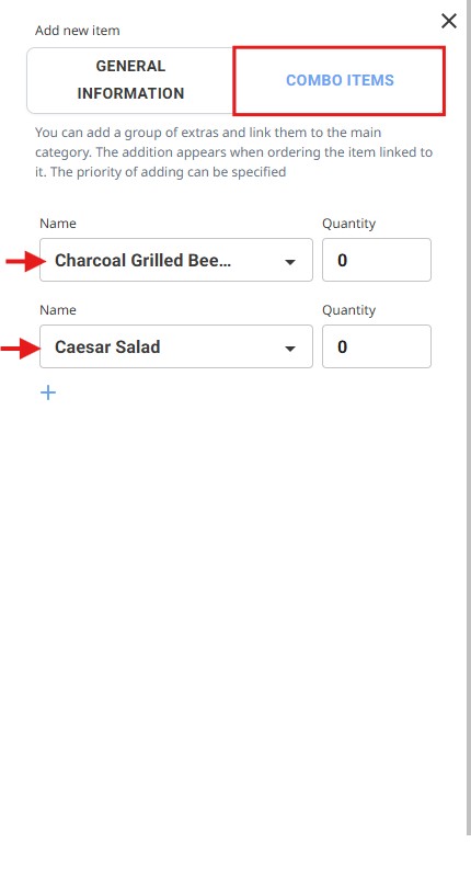 If you offer set meals, you can use the Combo Meal Feature, allowing you to group multiple items into a single option at a fixed price.